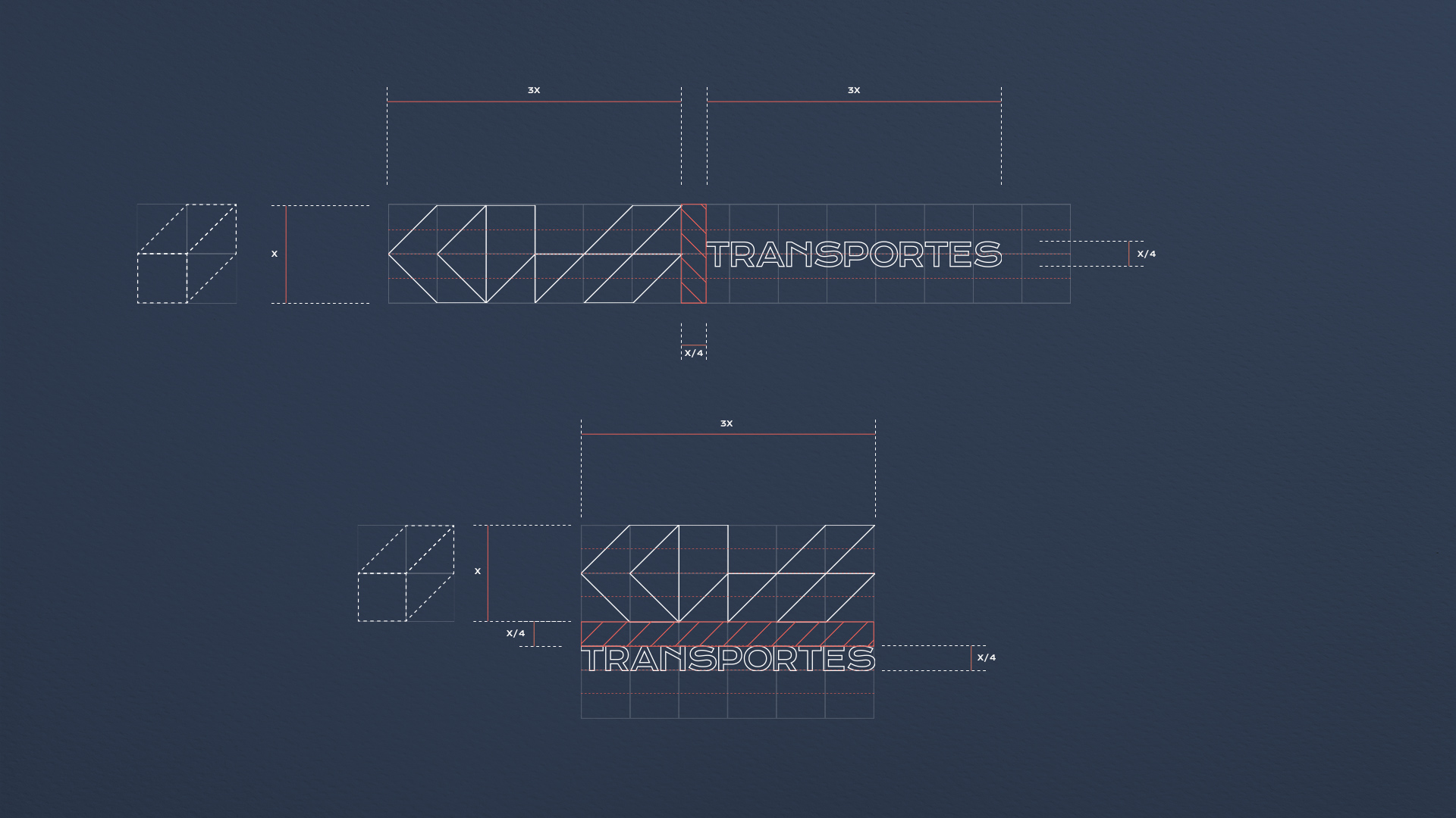 Utilizei um módulo dividido em quatro partes (X) como ponto de partida, construindo uma caixa em perspectiva. Neste contexto, destaquei as faces e laterais para moldar cada letra da marca. Assim, ao usar três destes módulos, configurei as letras CHS. O design final não só traz modernidade e simplicidade, mas também reflete a natureza sempre em movimento da logística.