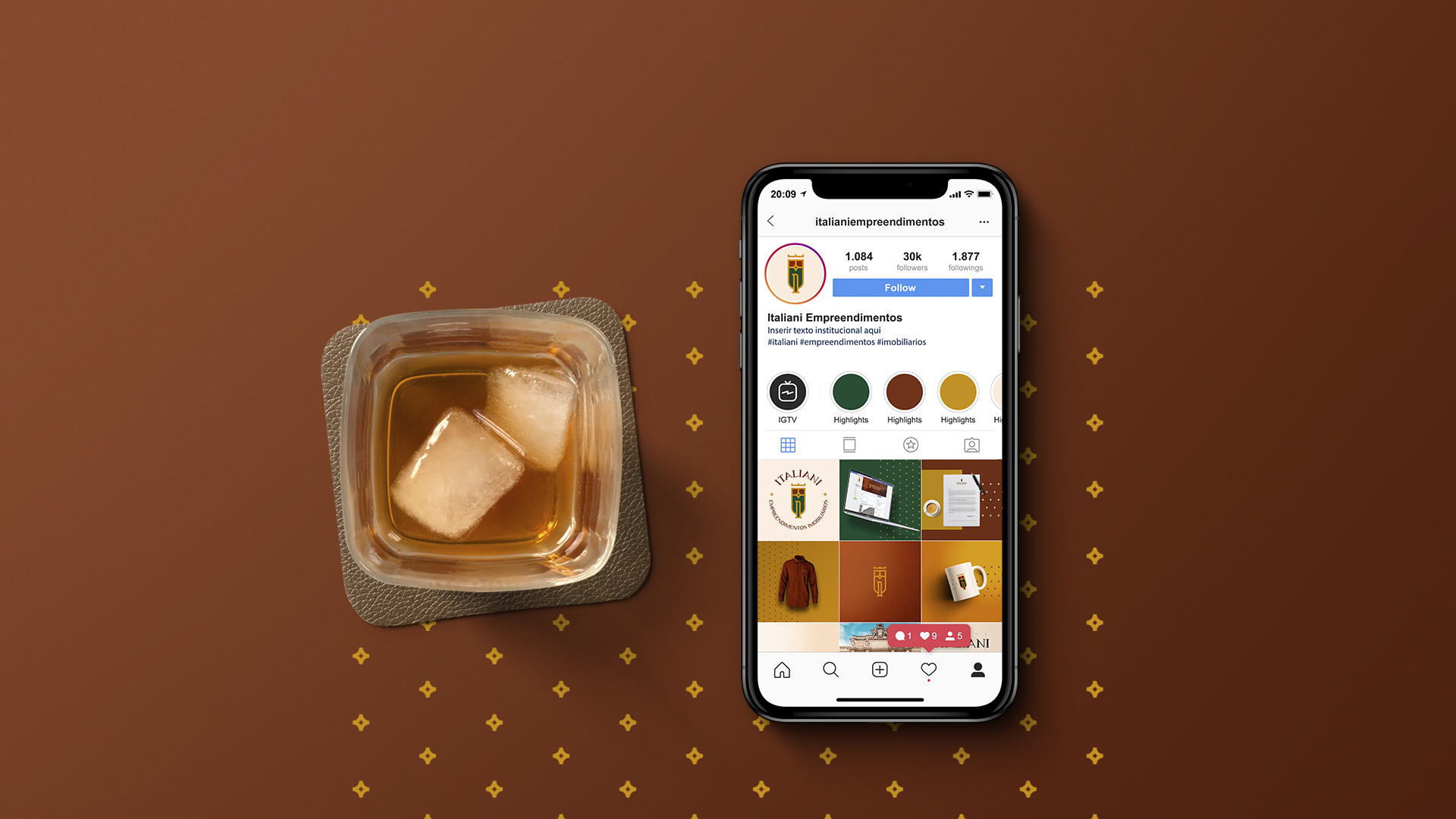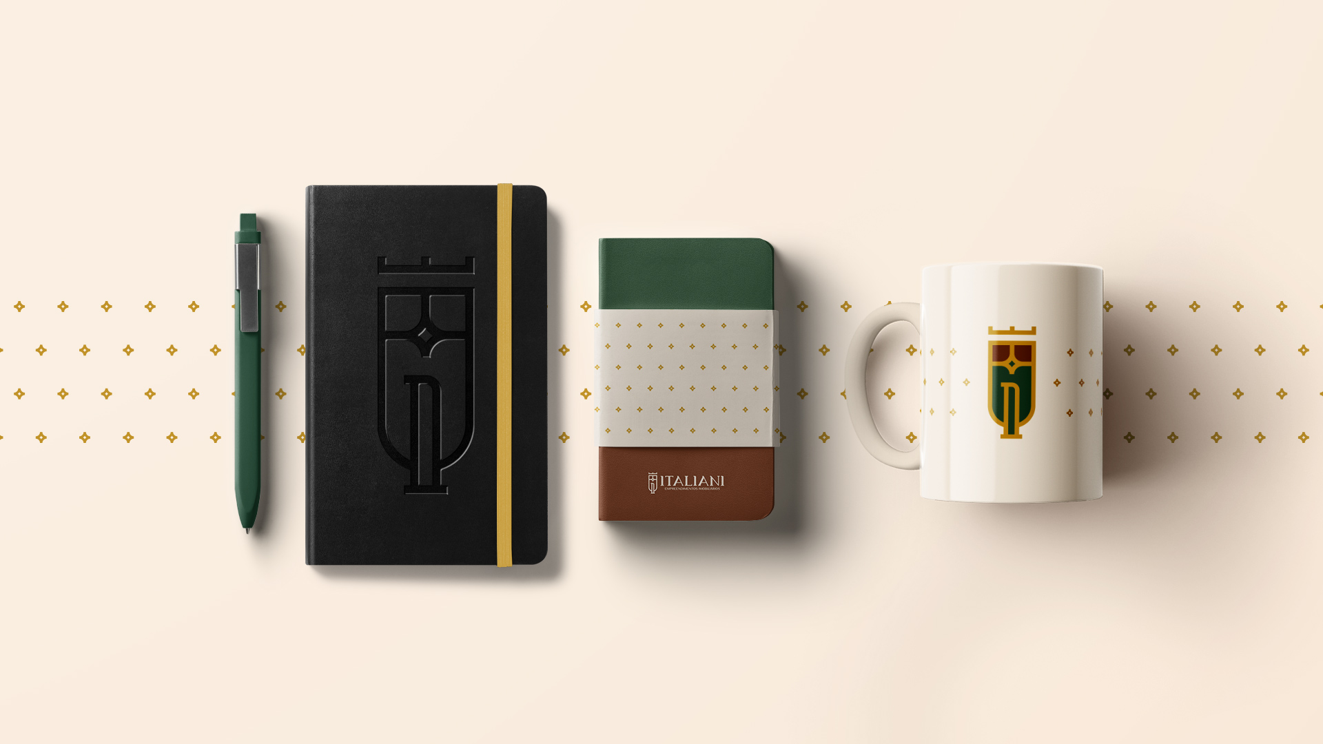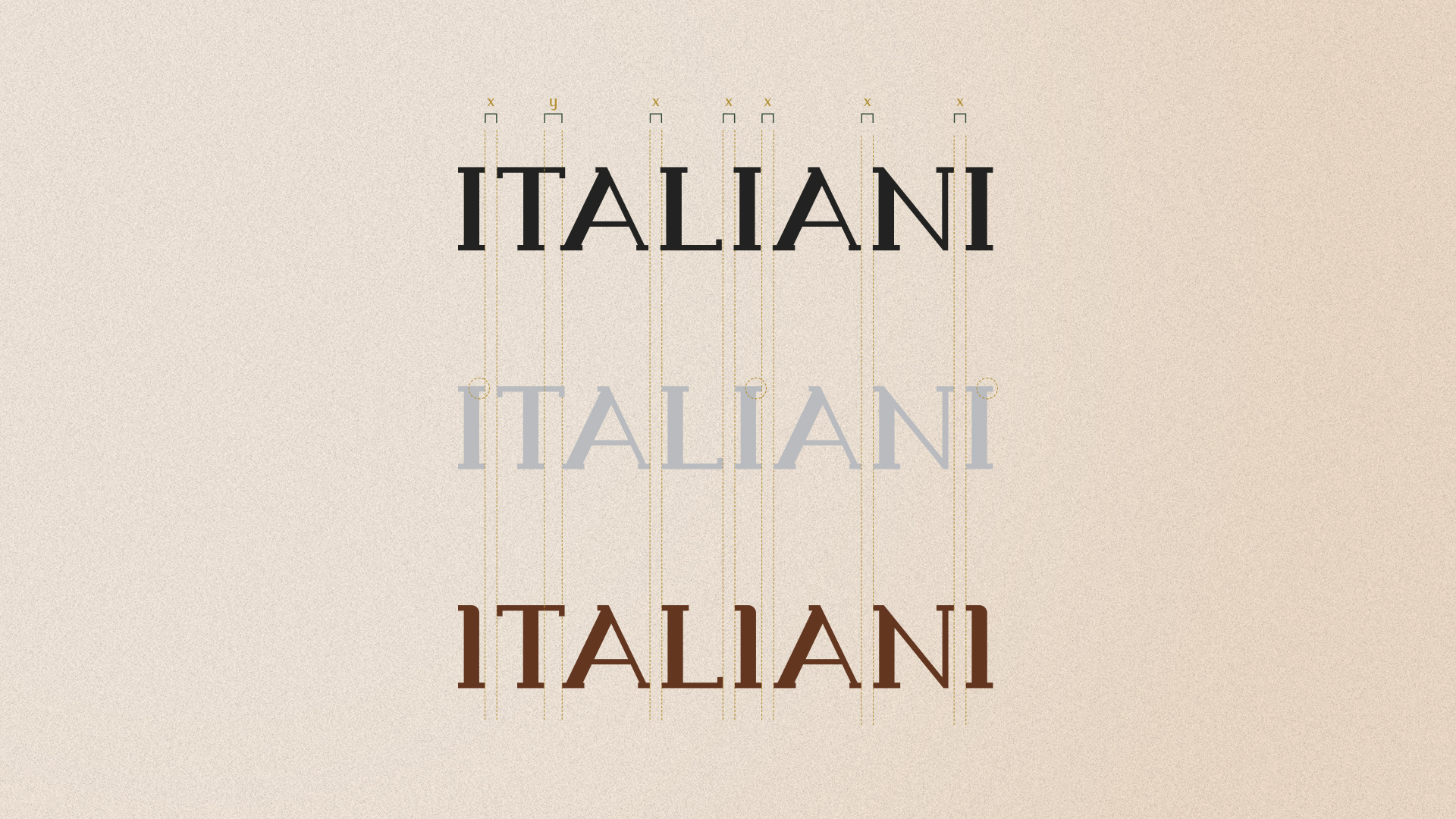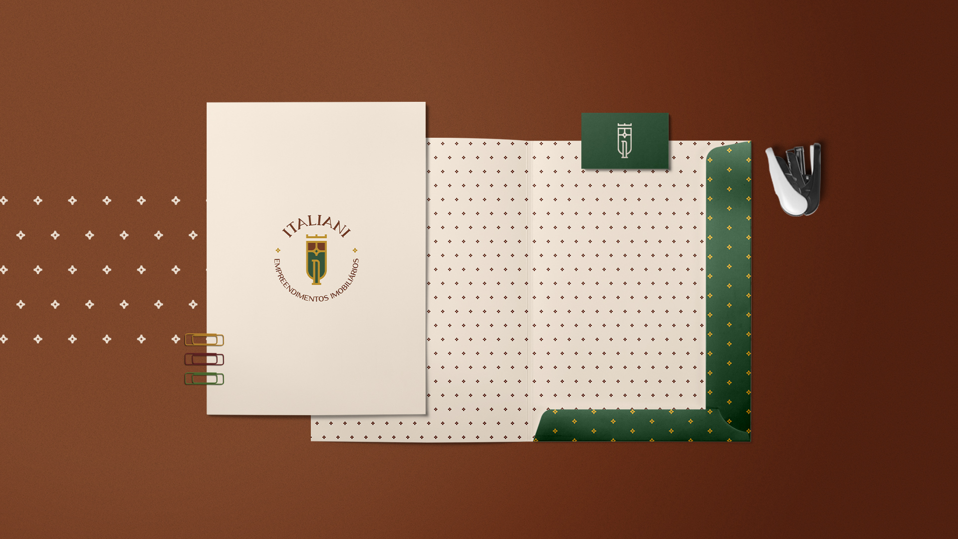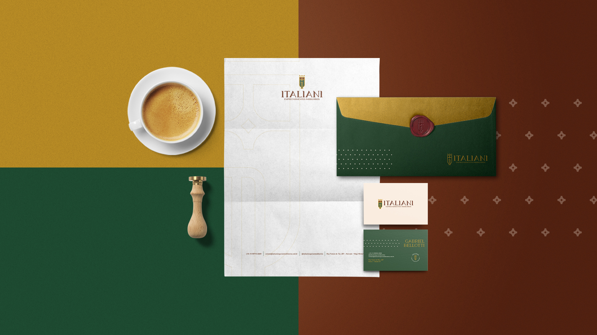 Esse projeto foi um dos mais desafiadores esse ano para mim, a junção de alguns conceitos sintetizados em um único símbolo. O conceito do projeto foi desenvolver uma marca que remetesse a Itália, assim como os sobrenomes dos dois sócios e os brasões das duas famílias e que fosse séria, elegante, sofisticada e moderna. Analisando os dois brasões, usei como base o escudo (proteção) e a coroa (soberania e nobreza) que estão presentes nos dois brasões e a letra “I” inicial de Italiani dentro de um grid geométrico. Trazendo uma harmonia entre os elementos e remetendo a arquitetura gótica da Itália.