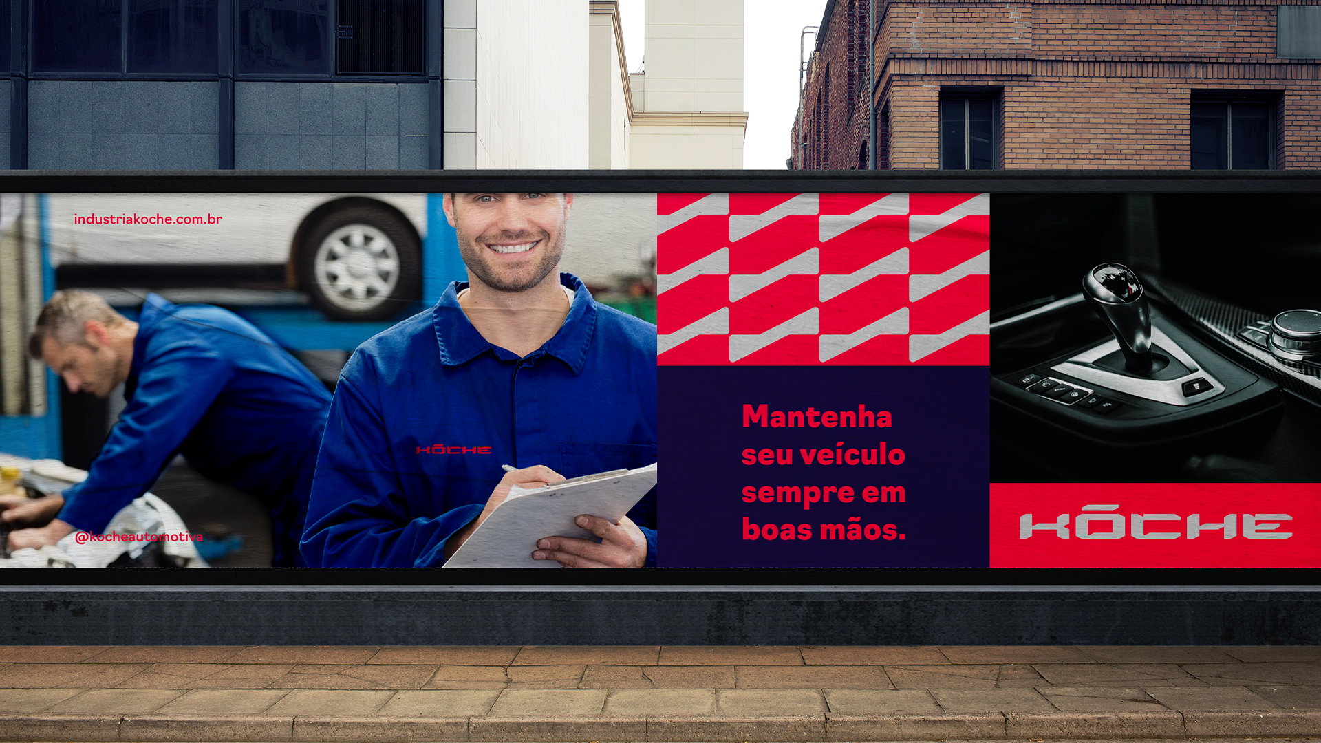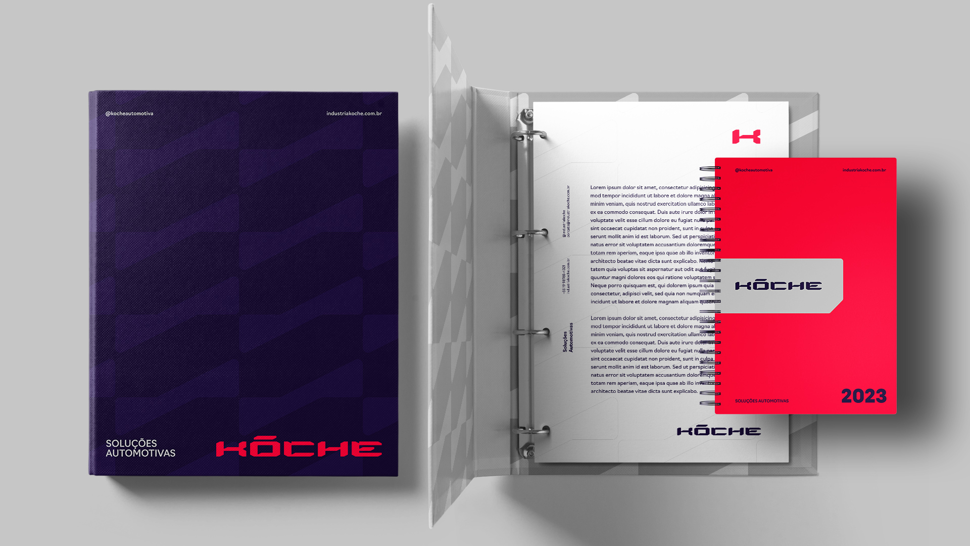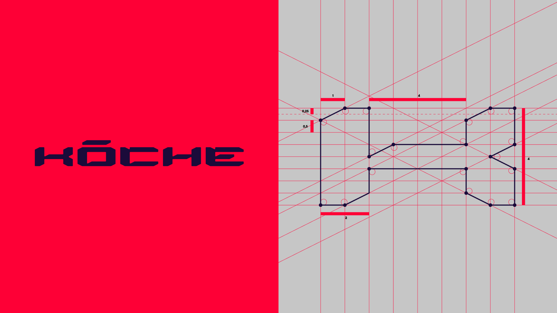 A criação da marca Kóche foi inspirada nas curvas das ferramentas mecânicas, na robustez do ramo e na modernidade. O logotipo foi construído utilizando um grid de 1 cm x 1 cm, reforçando os conceitos de robustez e legibilidade.
