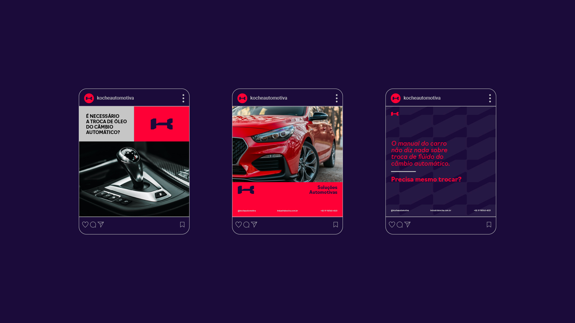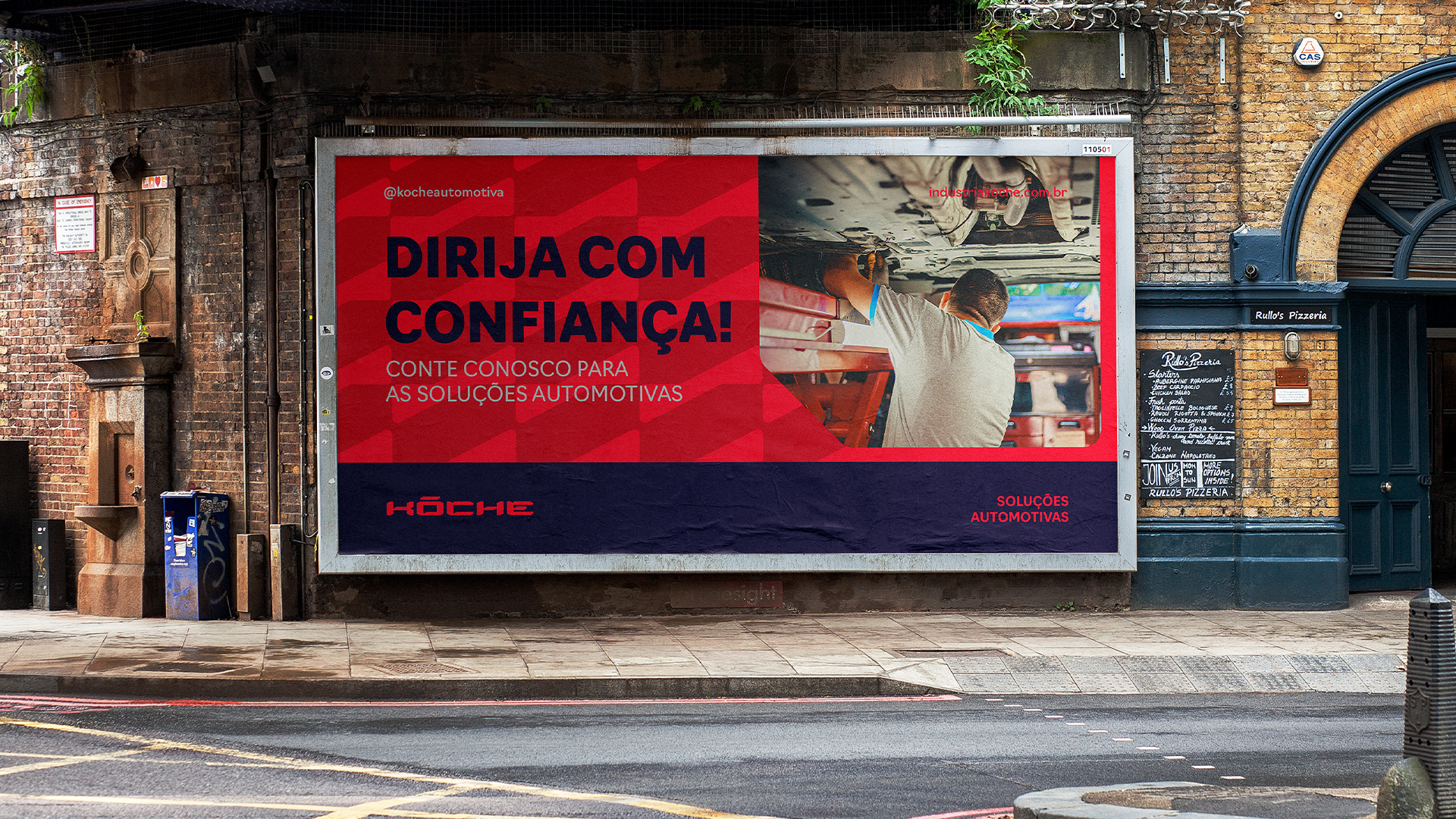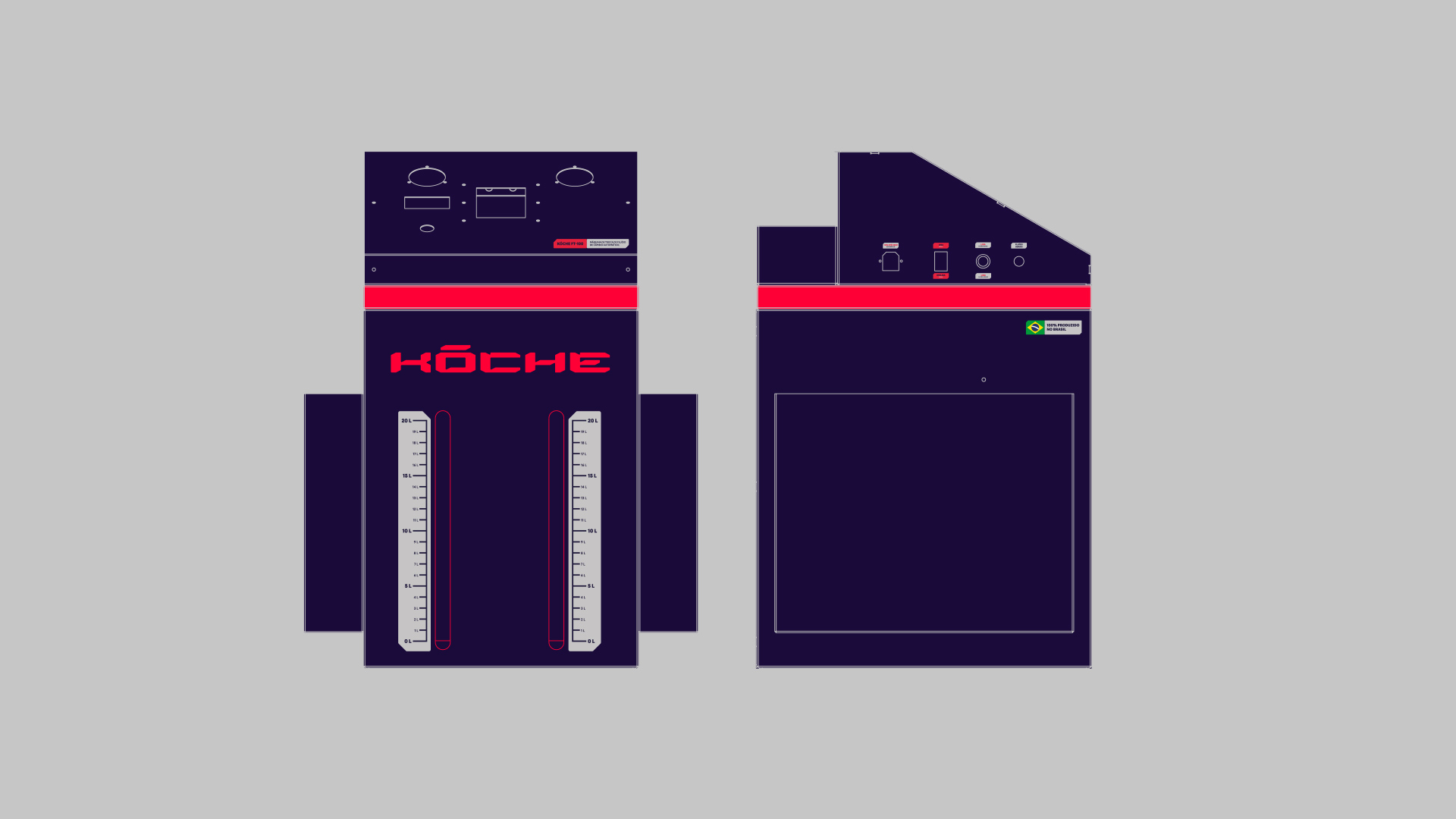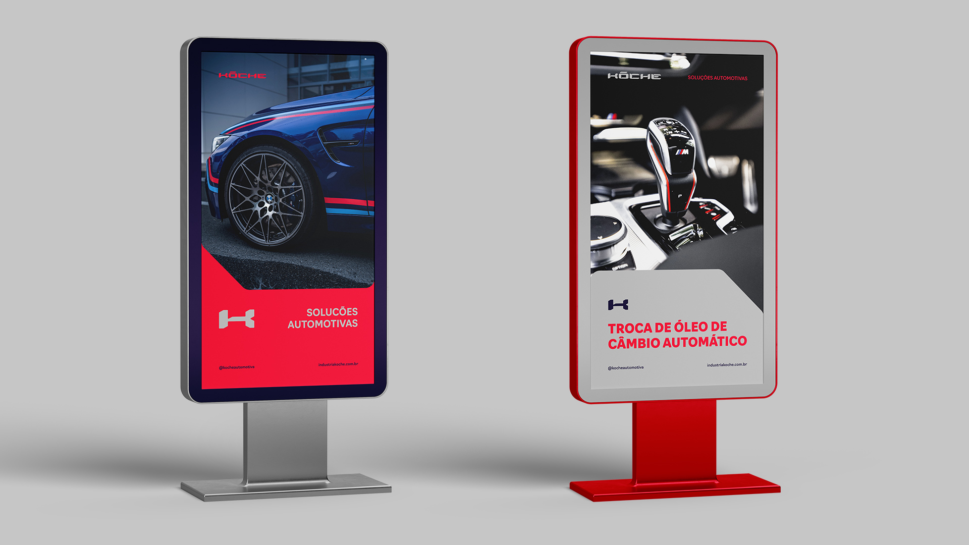 A criação da marca Kóche foi inspirada nas curvas das ferramentas mecânicas, na robustez do ramo e na modernidade. O logotipo foi construído utilizando um grid de 1 cm x 1 cm, reforçando os conceitos de robustez e legibilidade.