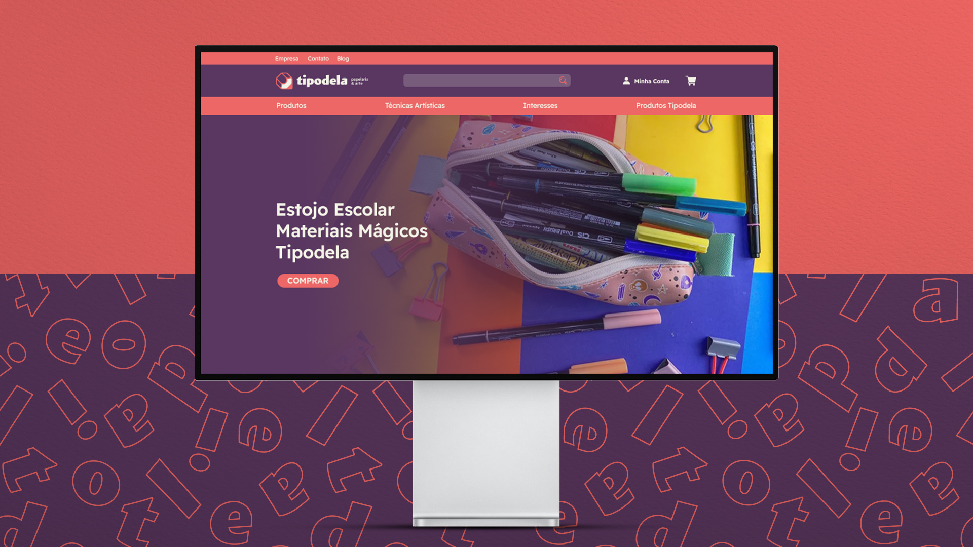 Karol Stefanini profissional que trabalha com lettering, me procurou recentemente para desenvolvermos uma nova identidade visual da sua loja, a Tipodela. Um e-commerce de materiais artísticos e de papelaria que agora esta se expandindo para uma loja física. Com isso a marca pretende conectar profissionais artísticos, designers, arte-terapeutas, entusiastas, artistas de final de semana e crianças.
